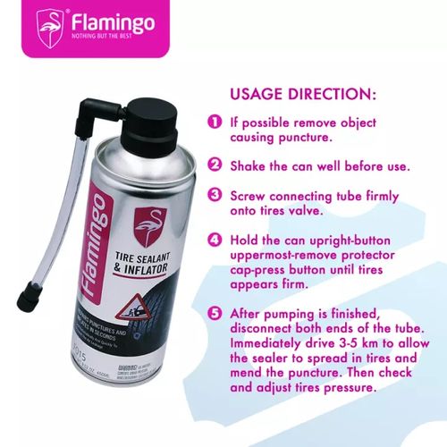 تم تصميم منفاخ الإطارات في حالات الطوارئ وسدادة العجلة لإيجاد وإغلاق معظم الثقوب العادية والتسريبات البطيئة بسرعة. إنه قابل للتطبيق بنسبة 100 ٪ على فجوة 6 مم على الإطارات المطاطية التي لا تحتوي على أنابيب للسيارات والدراجات النارية والدراجات الإلكترونية. لا يلزم تغيير الرافعة أو الإطارات. يتم الانتهاء من عملية ضخ وإصلاح الإطارات بخطوة واحدة في ثوانٍ. يمكن أيضًا تعبئته في إطارات جديدة لتجنب التسربات غير المتوقعة. غير سام وعديم الرائحة. لا تآكل ولا ضرر للإطار.اتجاه الاستخدام: 1. إذا كان ذلك ممكنا إزالة الكائن الذي تسبب في ثقب. 2-رج العبوة جيداً قبل الاستخدام. 3. اربط أنبوب التوصيل بإحكام على صمام الإطارات. 4. امسك العلبة -الزر العلوي- لإزالة غطاء الواقي-اضغط الزر حتى تظهر الإطارات ثابتة. 5. بعد الانتهاء من الضخ ، افصل طرفي الأنبوب. قم على الفور بقيادة 3-5 كم للسماح لمانع التسرب بالانتشار في الإطارات وإصلاح الثقب. ثم فحص وضبط ضغط الإطارات.